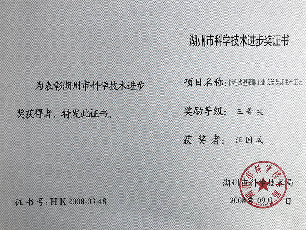 2008湖州市科技進步獎三等獎-汪國成