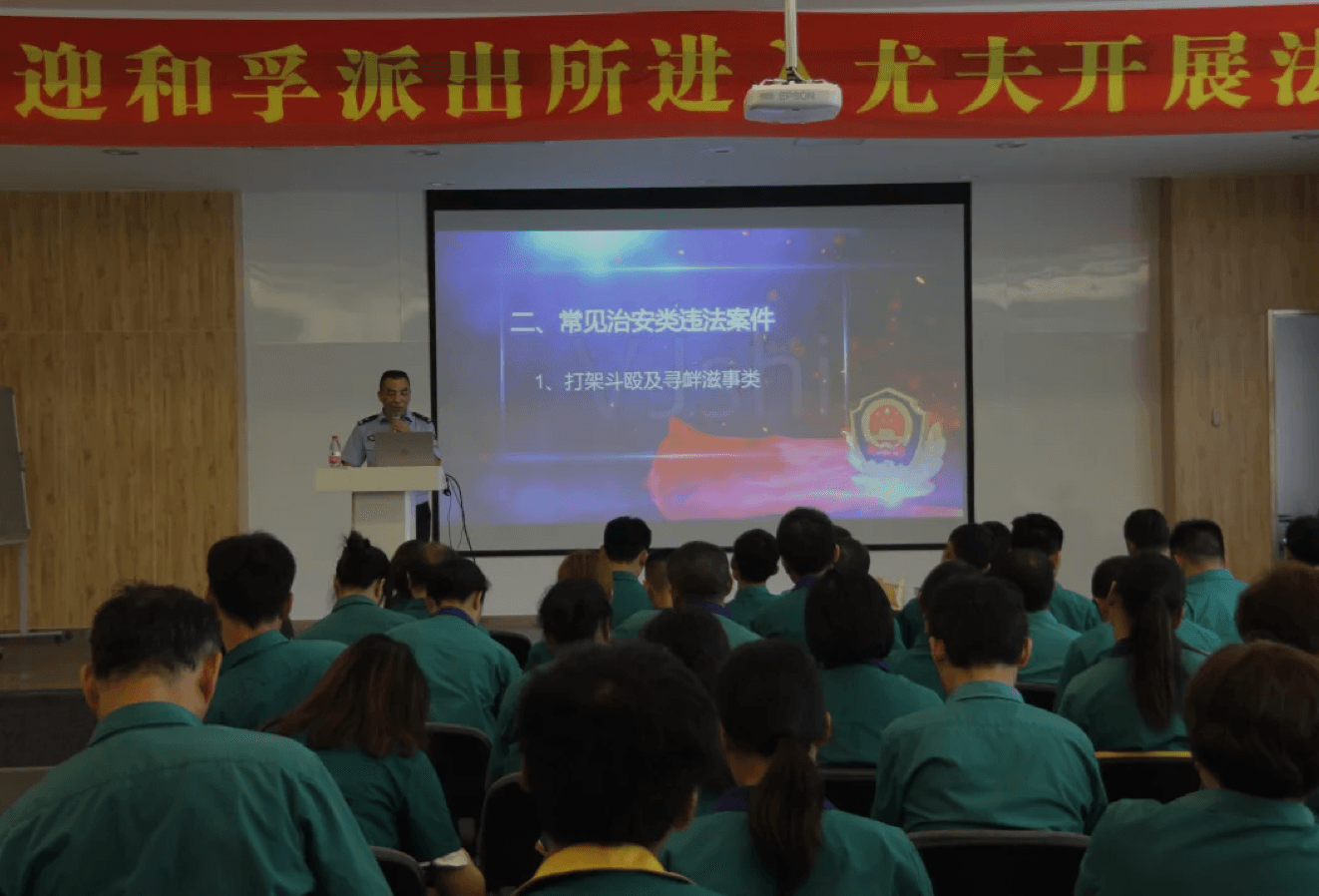 為深入企業做好法制宣傳教育,2019年8月21日,和孚派出所姚所長和楊隊一行,蒞臨我司開展防范通訊網絡詐騙、打架斗毆、吸毒販毒和交通安全等方面的法制宣傳教育。